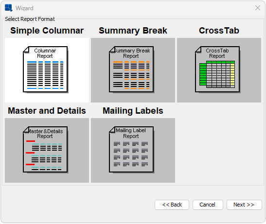 Select any report type you like in the Report Wizard.