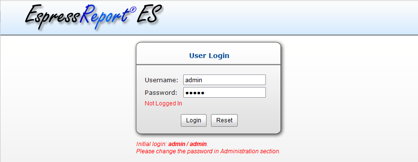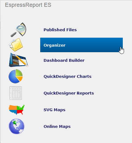 Let’s create a report based on excel data with EspressReport ES. EspressReport ES uses a tool called Organizer to manage and visualize connection information. Log in to the startup screen.